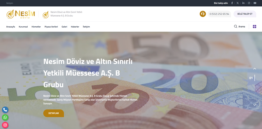 Nesim Döviz ve Altın Sınırlı Yetkili Müessese A.Ş. B Grubu Elazığ Şehrinde Hizmet vermektedir. Geniş Müşteri Portföyine Sahip olan İşletmemiz Müşterilerine Kaliteli Hizmet Sunuyor.